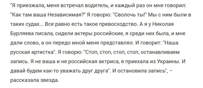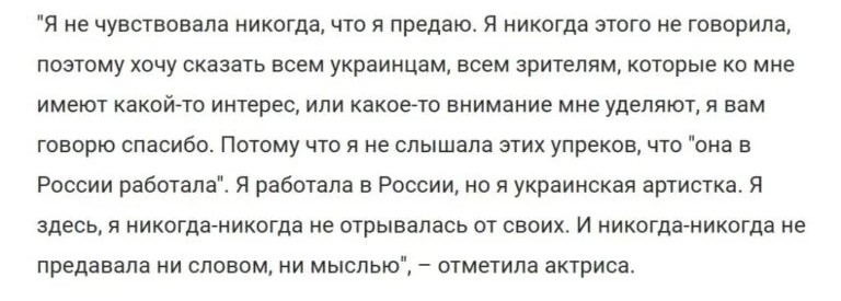 Можно быть не на стороне политики, но и не ставить крест на аудитории. Столько лет отдать российскому зрителю и в один миг забыть про него. Как-то странно. Нужно было еще тогда поправлять журналистов и говорить, что не российская актриса.
